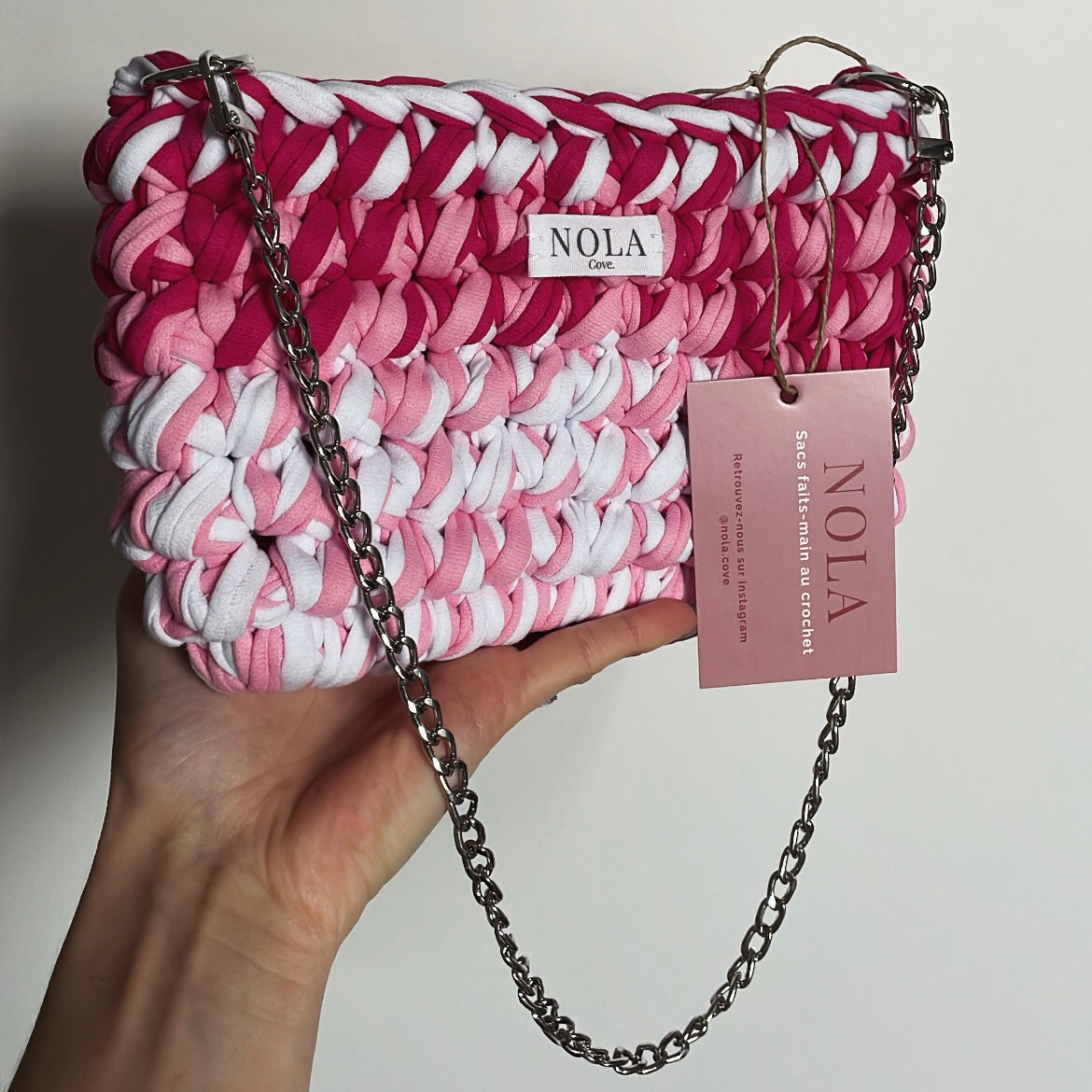 Chaque accessoire est crocheté à la main avec amour, dans le respect du temps et de l'environnement. Toutes nos créations sont réalisées à partir de fil de t-shirt de haute qualité, composé principalement de coton et certifié OEKO-TEX, garantissant l'absence de substances nocives. Cette matière allie douceur, résistance et confort, idéale pour donner vie à des créations durables et élégantes.