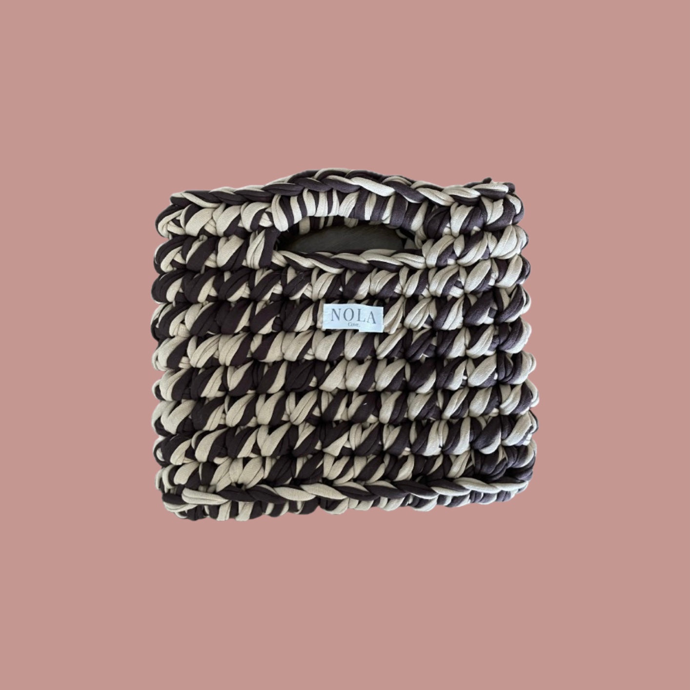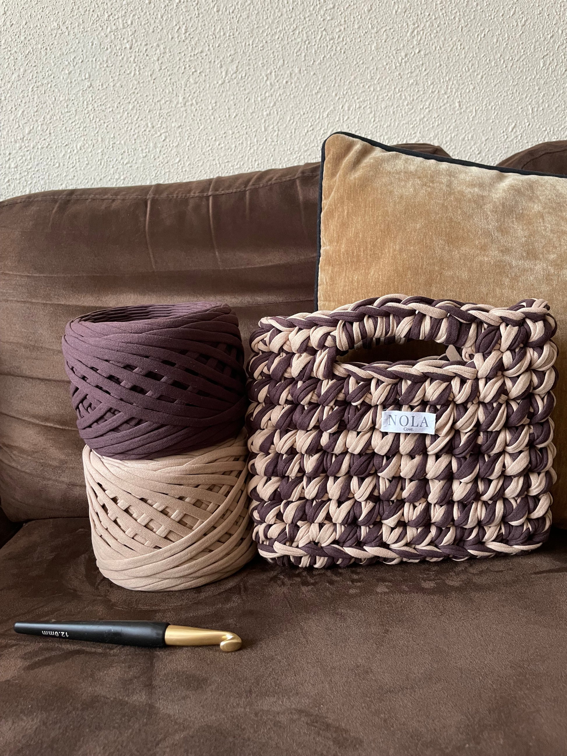 Chaque accessoire est crocheté à la main avec amour, dans le respect du temps et de l'environnement. Toutes nos créations sont réalisées à partir de fil de t-shirt de haute qualité, composé principalement de coton et certifié OEKO-TEX, garantissant l'absence de substances nocives. Cette matière allie douceur, résistance et confort, idéale pour donner vie à des créations durables et élégantes.