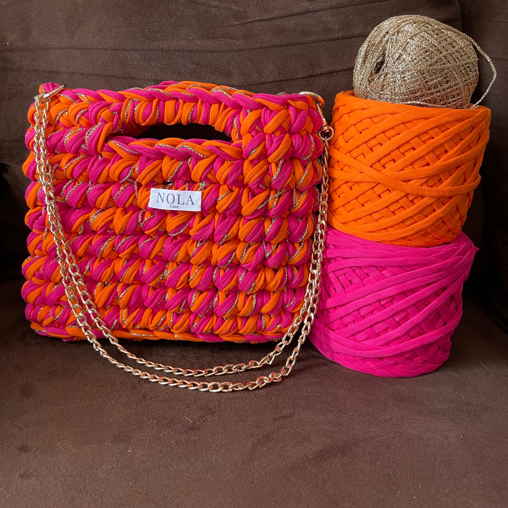 Chaque accessoire est crocheté à la main avec amour, dans le respect du temps et de l'environnement. Toutes nos créations sont réalisées à partir de fil de t-shirt de haute qualité, composé principalement de coton et certifié OEKO-TEX, garantissant l'absence de substances nocives. Cette matière allie douceur, résistance et confort, idéale pour donner vie à des créations durables et élégantes.